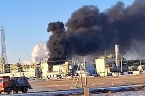 Fire at Tengiz oil field, January 18, 2026. Video screenshot.